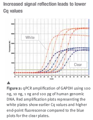這里小編隆重介紹杭州朗基生產(chǎn)的Q1000型熒光定量PCR系統(tǒng),由于采用T-Optical頂部檢測(cè)技術(shù),可以使用白管,相比國(guó)內(nèi)大多數(shù)采用底部或側(cè)面檢測(cè)技術(shù)而只能使用透明管的同類產(chǎn)品,出峰時(shí)間更短,檢測(cè)靈敏度也更高(下圖為國(guó)外廠家測(cè)試的白管跟透管的檢測(cè)效果比較)。