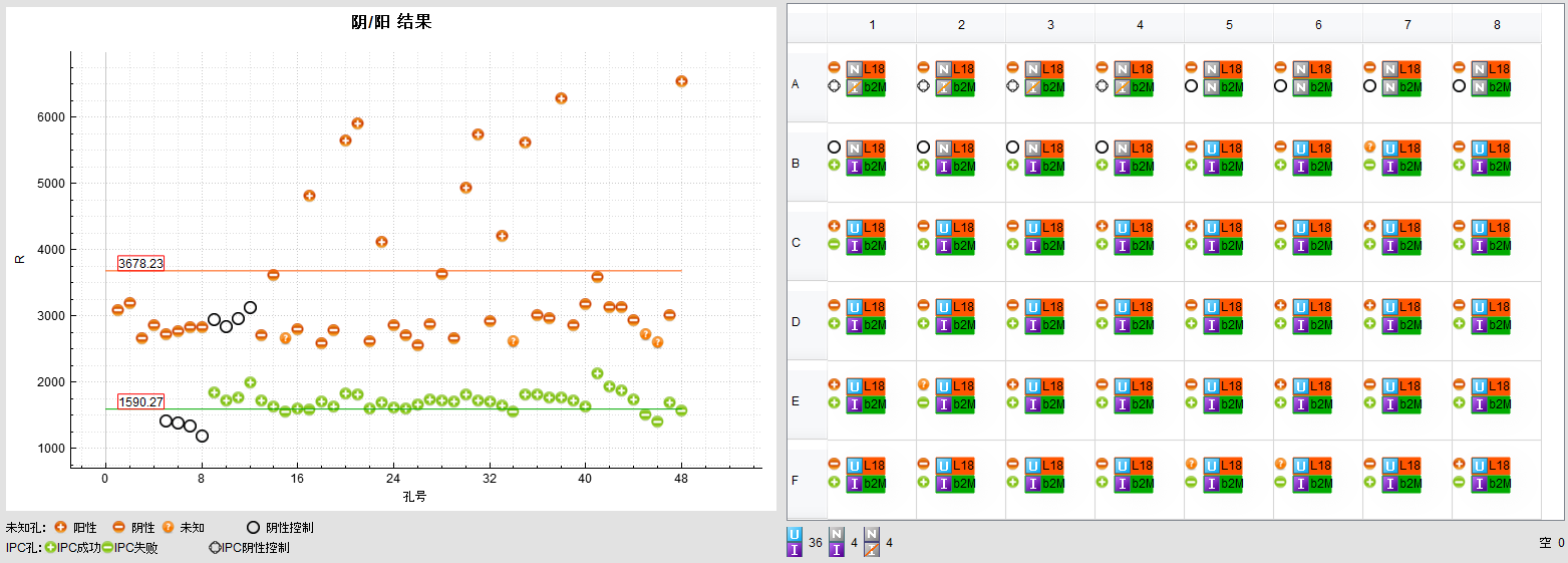分析軟件內(nèi)置陰陽(yáng)性判定功能,一次可以檢測(cè)48個(gè)樣本的陰陽(yáng)性。同時(shí)軟件支持添加IPC(內(nèi)部陽(yáng)性對(duì)照),通過(guò)在待檢樣本中添加IPC,可以輕松地排除假陰性的干擾,減少誤判(見(jiàn)下圖)。